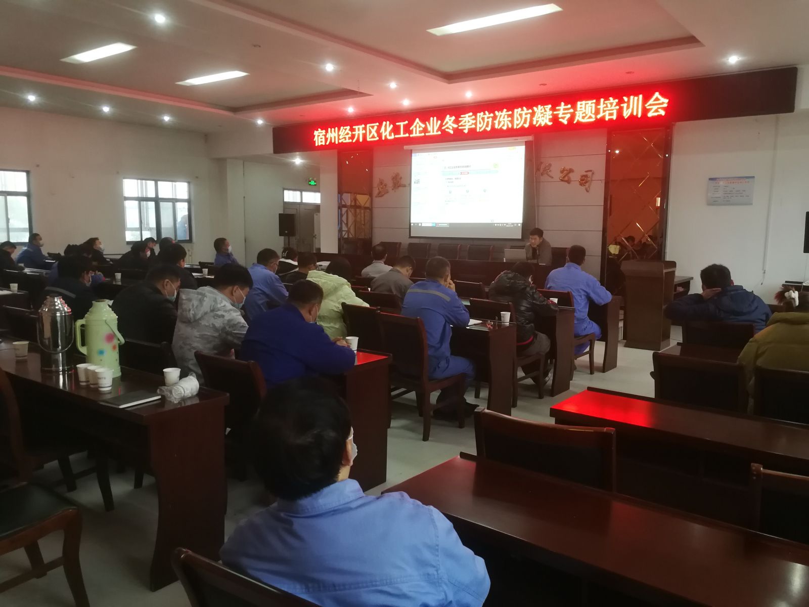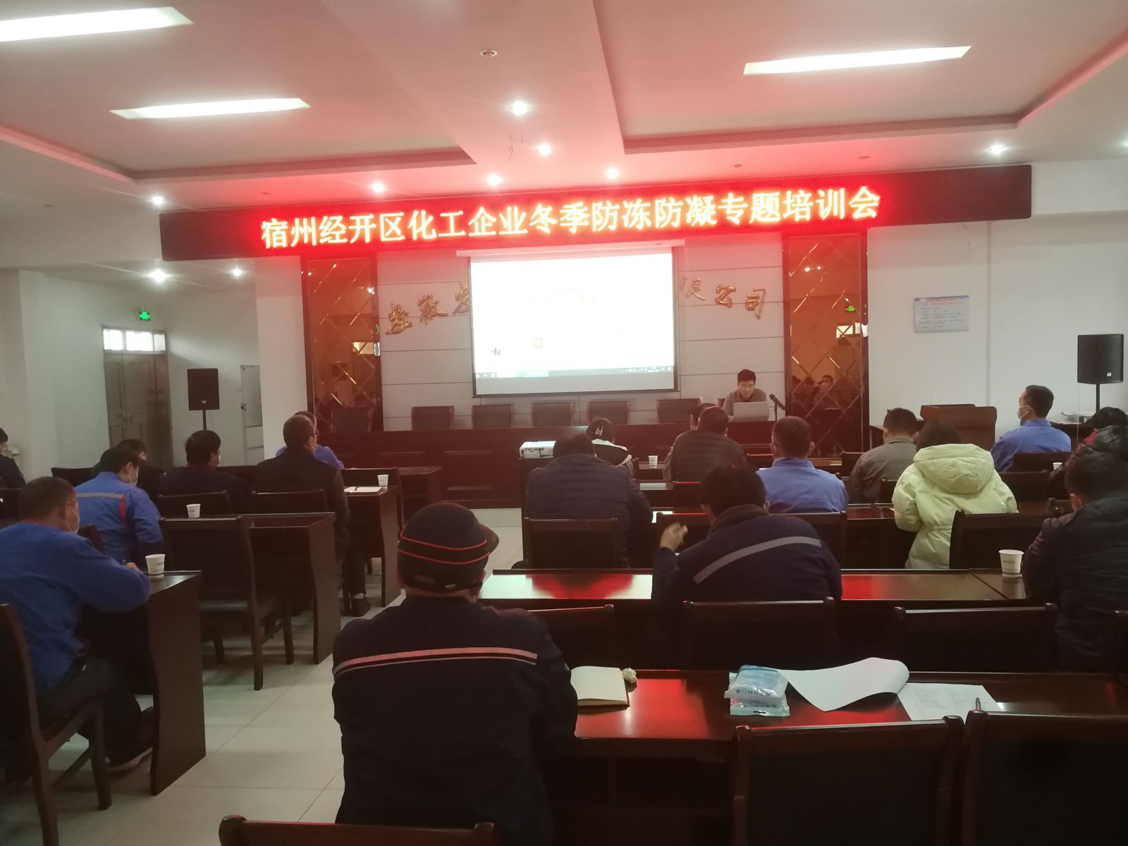 2022年11月29日,宿州經(jīng)開區(qū)化工企業(yè)冬季防凍防凝專題培訓(xùn)會在我司研發(fā)中心電教室召開,公司安環(huán)部組織各分廠一線員工參加此次培訓(xùn),認(rèn)真學(xué)習(xí)冬季防凍防凝知識。