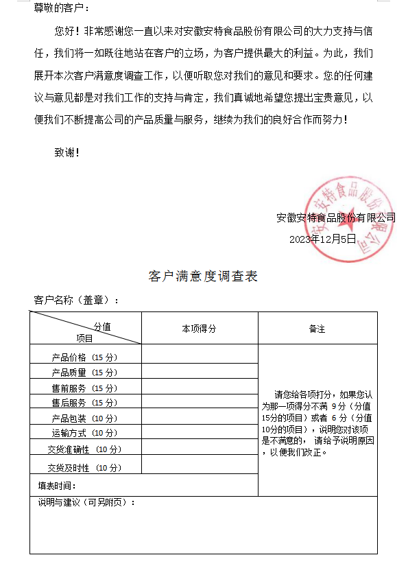 公司將于2023年12月6日-12月22日開(kāi)展2023年度客戶滿意度調(diào)查工作,文件如下。