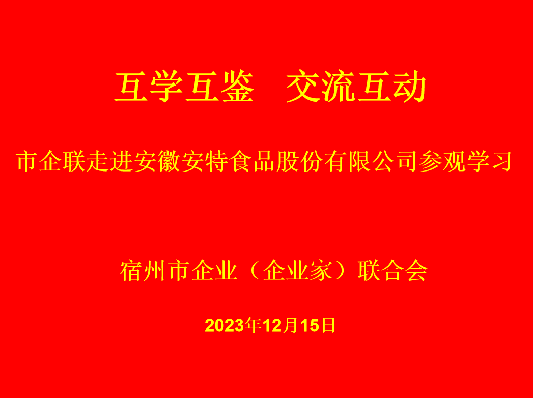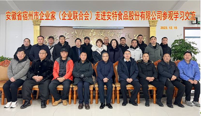 12月15日下午,市企業(yè)(企業(yè)家)聯(lián)合會組織30余家會員單位走進安徽安特食品股份有限公司參觀學(xué)習(xí)、交流互動。